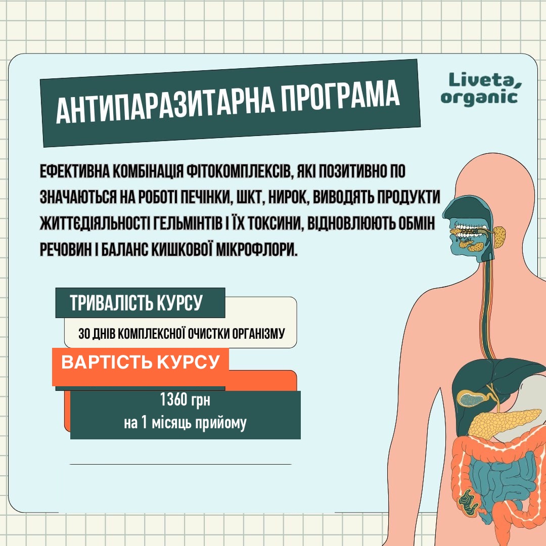 ✔️ Комплексний підхід: вплив як на паразитів, так і на відновлення організму після їхнього виведення.