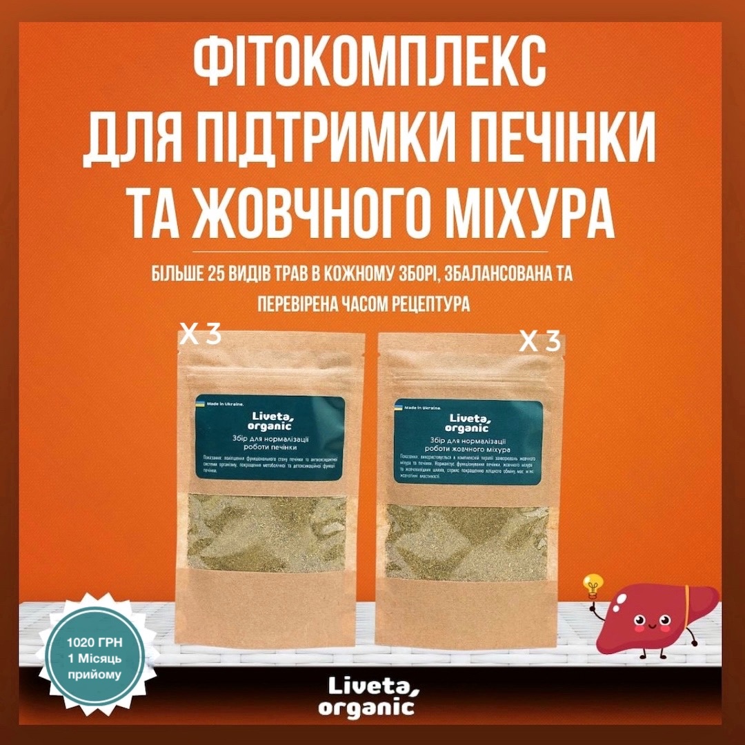 Для підтримки печінки та жовчного міхура рекомендуємо використовувати фітокомплекс від Liveta, organic, який складається з двох позицій:
